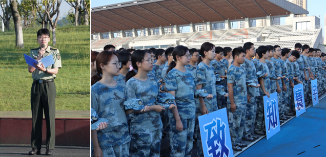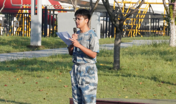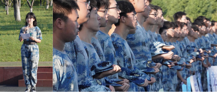 新生代表张晗琳分享了军训期间的收获与成长,她提到,过去两周的训练虽然辛苦,但十分充实。她号召同学们要带着在训练场上收获的勇气、坚韧和战友情谊,相互扶持,彼此鼓励,以坚韧为桨,以集体为帆,共同书写这段难忘的军训旅程。