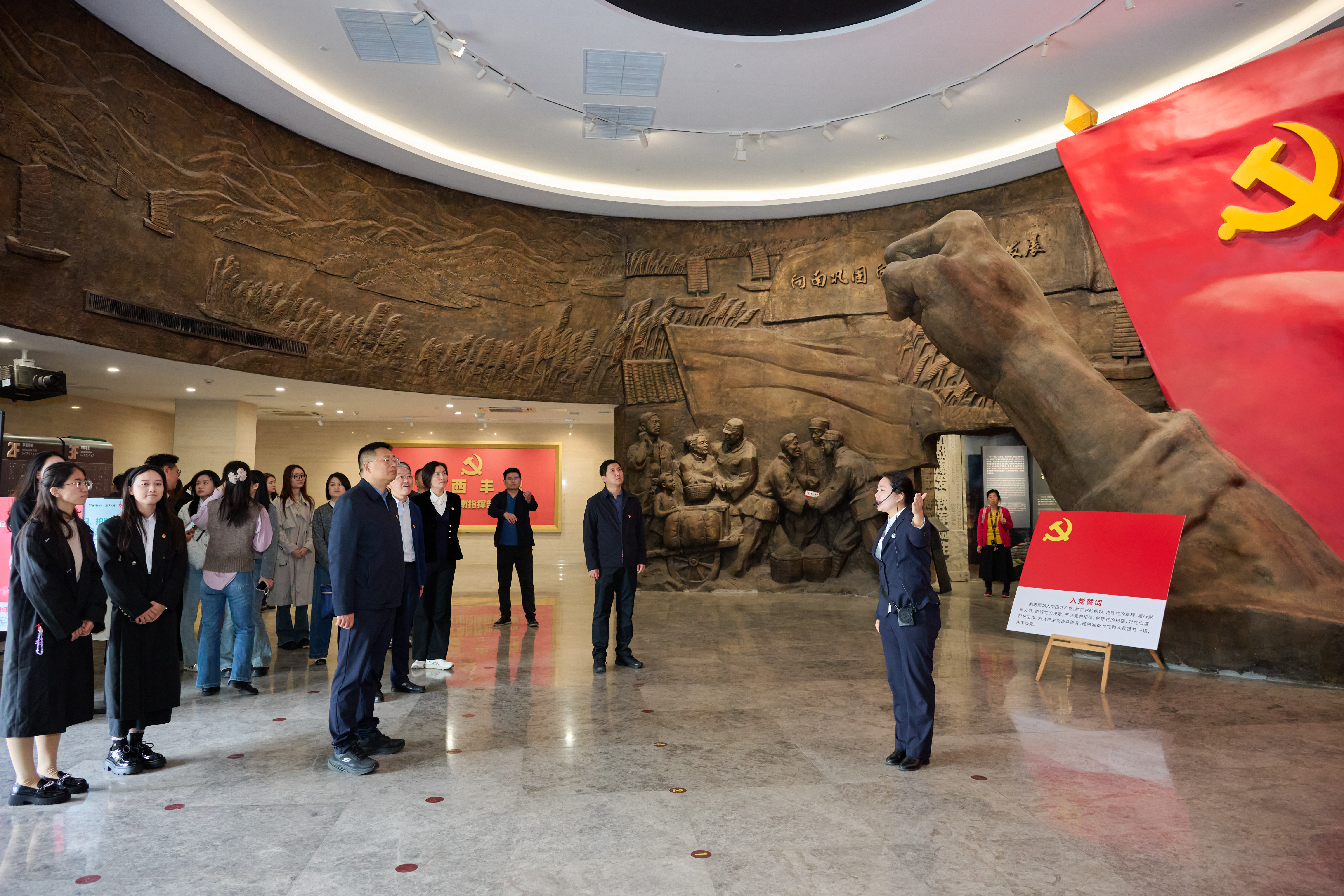 党日活动中,全体党员在纪念馆广场的党旗前整齐列队,举起右拳庄严重温入党誓词。铿锵有力的誓言回荡在广场上空,不仅是对入党初心的再次叩问,更强化了党员们的党性意识与使命担当,让大家在仪式感中凝聚起“为党育人、为国育才”的共识。
