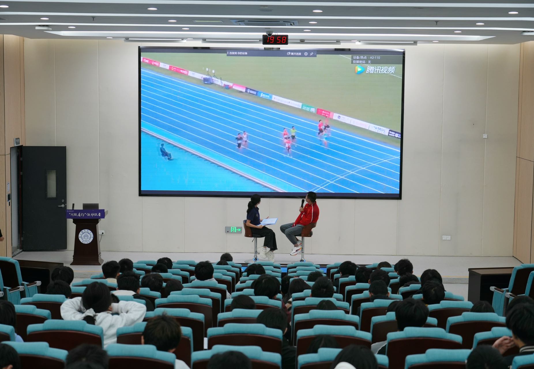 活动开始,蔡孟彪以《田径中的人生起点与终点》为题,为现场同学们讲解了田径运动的基础作用与中国田径的发展历史,从刘长春的孤胆远征,到刘翔的突破种族偏见,再到苏炳添与巩立姣的科学训练与长期坚持,中国田径运动员自强不息的田径精神也让同学们深受触动,明白了每一块奖牌背后都是汗水与坚持的沉淀,更懂得了“平凡铸就伟大,拼搏成就梦想”的深刻内涵。
