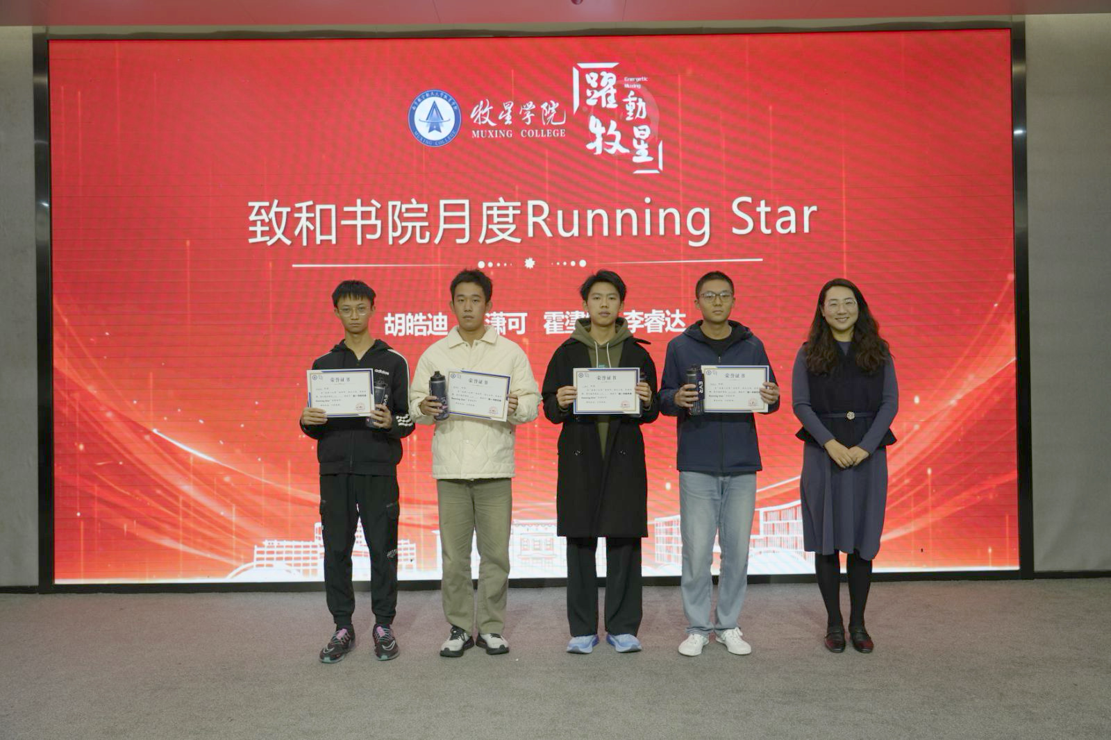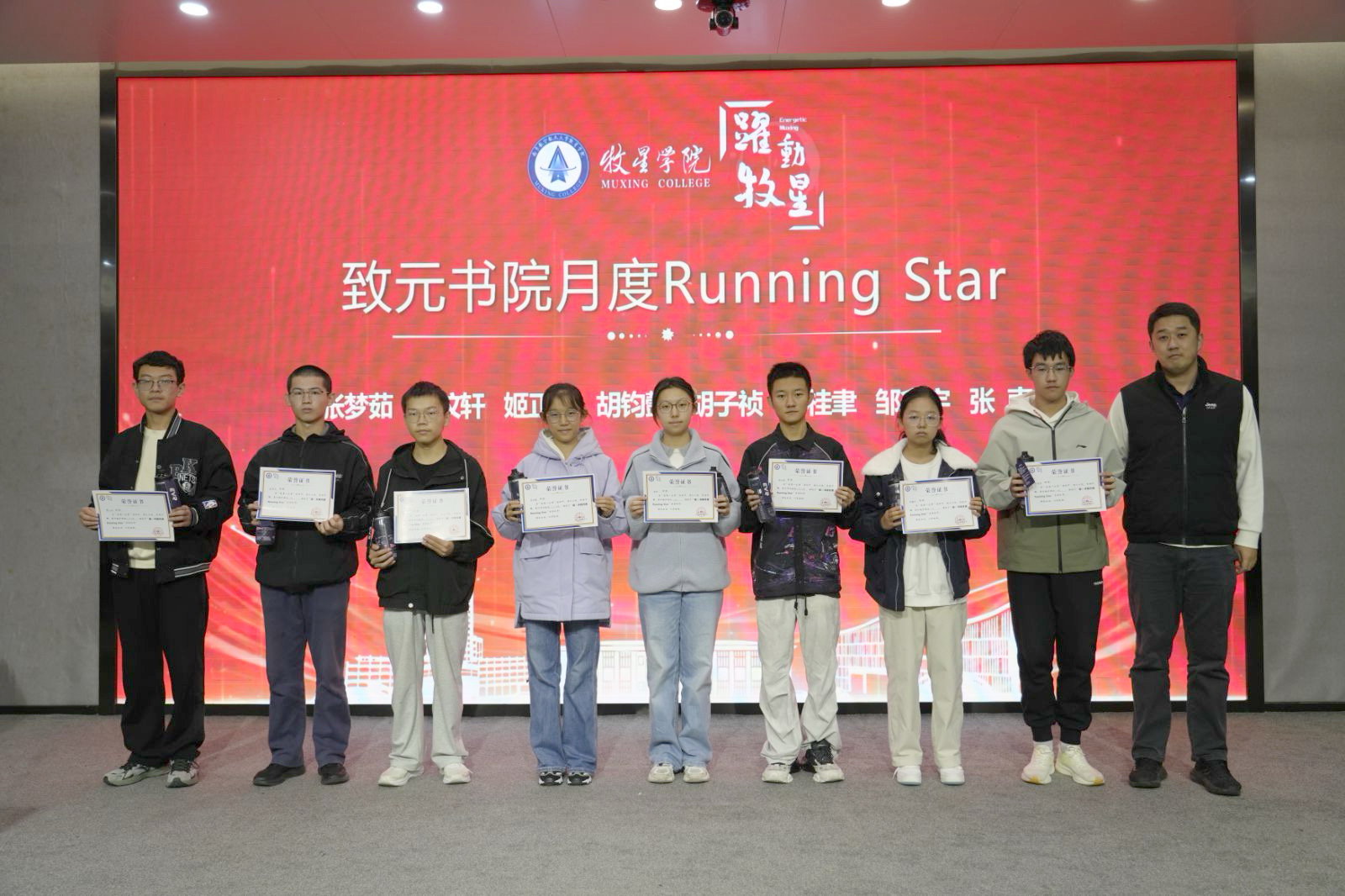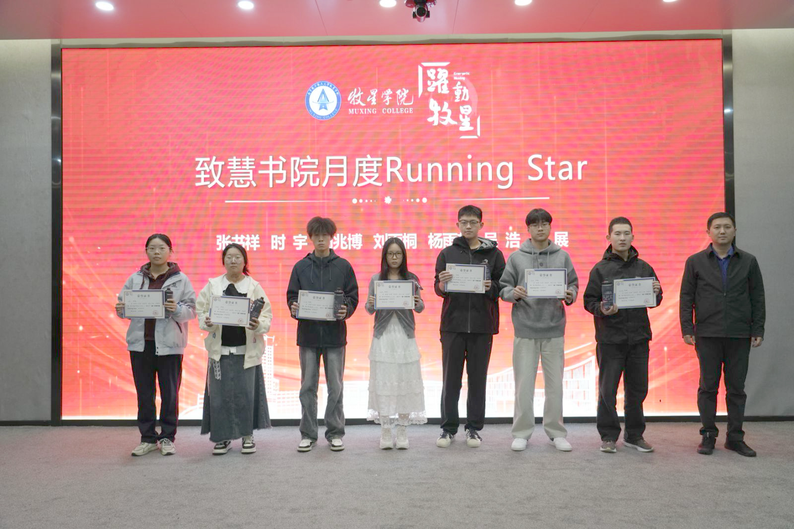 本次表彰大会分别对跑步里程最长、跑步频次最高以及平均配速最快的三类同学进行表彰,通过多元化评选维度传递“多元优秀”理念,让所有学生都能找到可参照的榜样。在颁奖环节,各书院执行院长丁琛、文杰、王宁、王宇宁依次为致慧书院、致微书院、致元书院、致和书院获奖学生颁发荣誉证书与运动奖品;学院党委书记贡海俊、院长蒋彦龙分别为学院获奖学生颁发荣誉证书与运动奖品。在受表彰学生中,有的月跑量达340公里、有的月跑频次达35次、有的平均配速达4分29秒/公里,他们用脚步践行运动精神、以行动凝聚青春活力,充分展现了牧星学子昂扬向上、奋勇争先的精神风貌。
