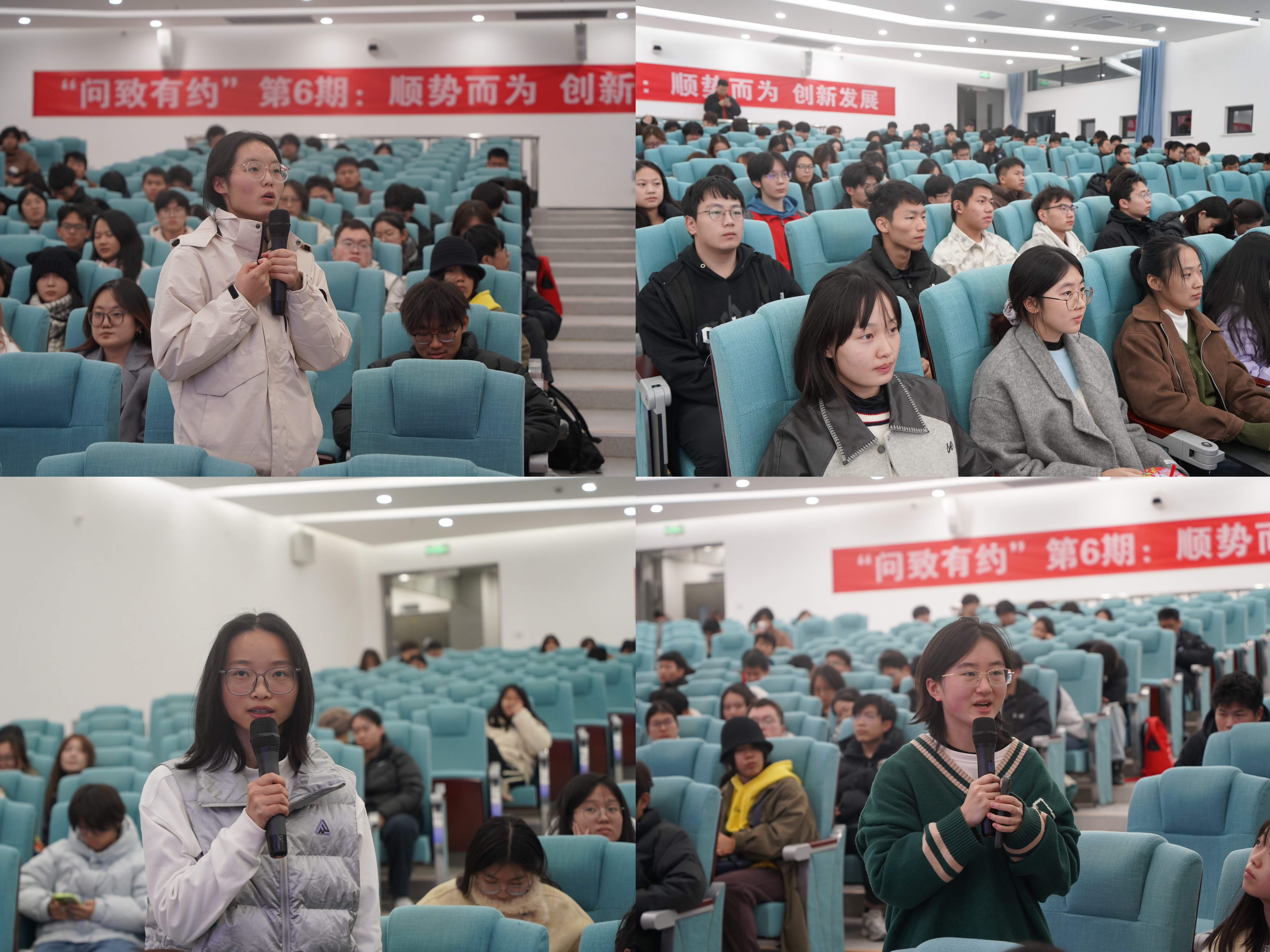 整场报告内容翔实、视野宏阔,不仅让同学们对改革开放以来的重大经济战略与全球产业趋势有了更深刻的理解,更通过华瑞集团“顺势而为、创新发展”的生动实践,为理解新质生产力在产业中的落地提供了极具说服力的案例,使“把握时代脉搏”从一个抽象概念变成了可感知、可借鉴的实践智慧。在互动环节,现场气氛热烈,同学们的提问聚焦于多个前沿议题,涵盖专业深造与未来规划、时代变迁中的个人定位,以及教育投资的经济效益等范畴,康宜华结合自身经历一一给予细致解答,令在场同学受益匪浅。