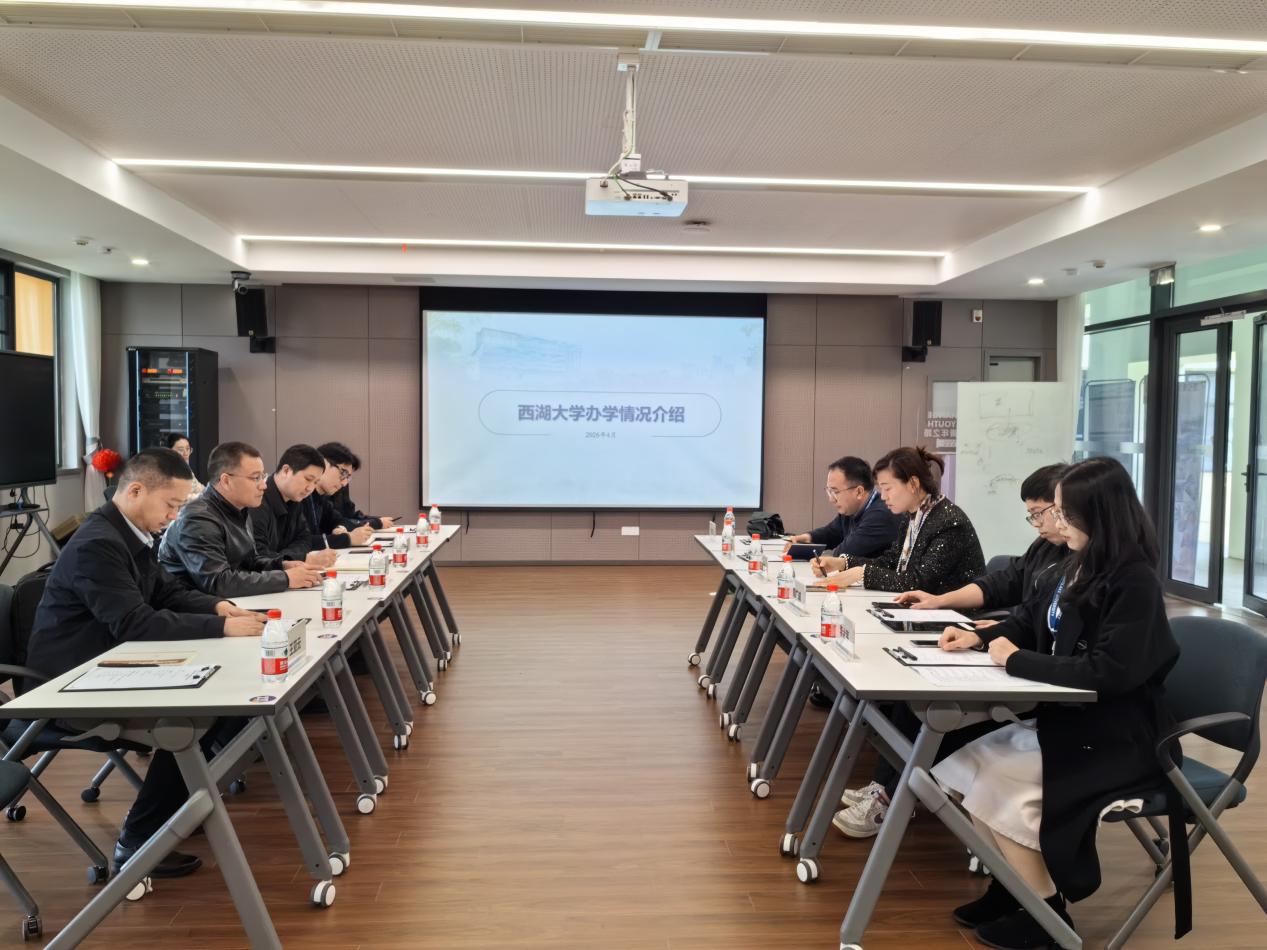 上午,调研组首站到访西湖大学。西湖大学学生事务部副主任、本科生书院行政副院长徐愿濛,教学事务部副主任尹鹏,本科生书院行政主管宋文菲,本科生书院团委书记周广成、辅导员李沚芊等热情接待并参加交流。双方围绕低年级大类培养、导师队伍下沉一线及学生自主管理能力激发等议题展开深入研讨。调研组随后参观了云谷校区校园环境与书院共享空间,并在午餐交流中进一步就本科生日常管理、学风建设等具体问题交换了意见。
